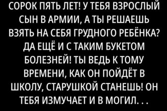Татьяна, ты в своём уме?! Тебе сорок пять лет! У тебя взрослый сын в армии, а ты решаешь взять на себя
