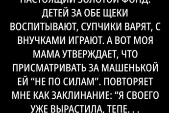 У всех моих подруг мамы настоящий золотой фонд: детей за обе щеки воспитывают, супчики варят, с внучками играют.
