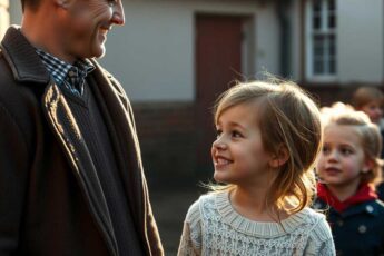 Он застыл и не знает, что ответить. Просит девочку пойти играть в свою комнату, она послушно уходит.