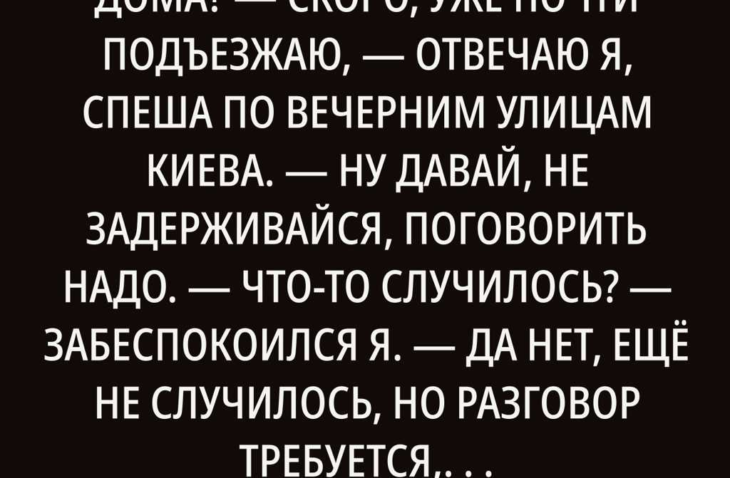 Скоро, уже почти подъезжаю, отвечаю я, спеша по вечерним улицам Киева.