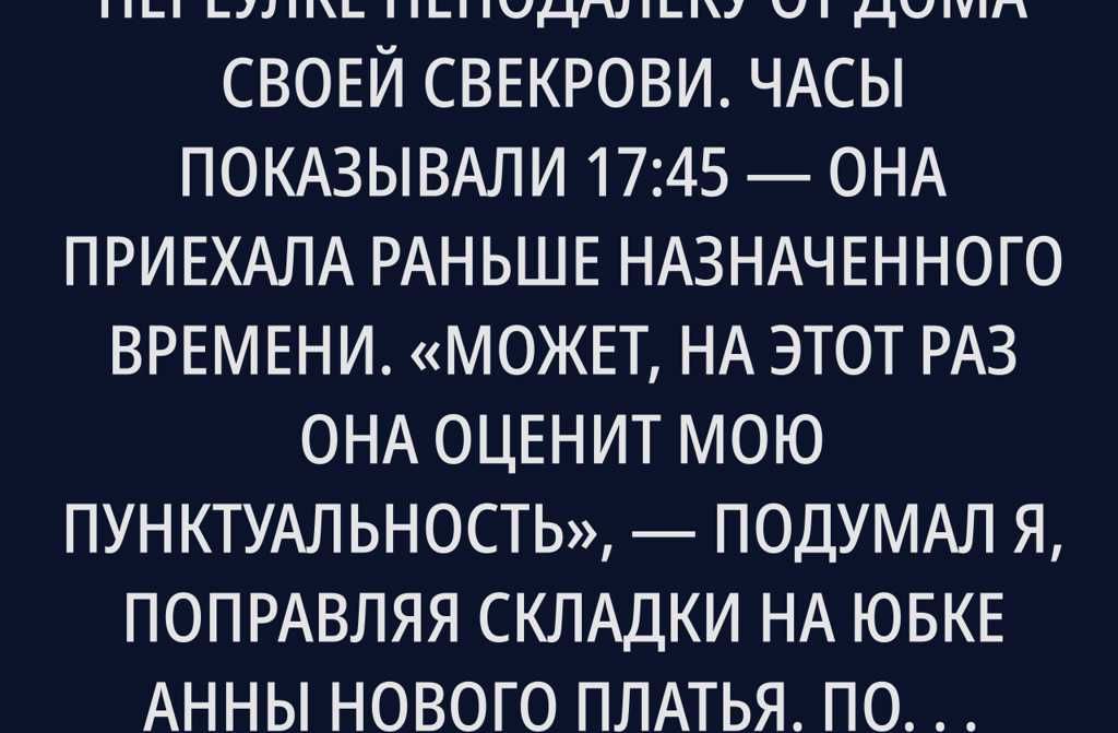 Анна припарковала машину в переулке неподалёку от дома своей свекрови. Часы показывали 17:45 она приехала раньше назначенного времени. «Может, на этот раз она оценит мою пунктуальность», подумал я, поправляя складки на юбке Анны нового платья. Подарок старинная брошь, которую Анна искала у коллекционеров несколько месяцев, аккуратно лежал на заднем сиденье, обернутый в праздничную бумагу.
