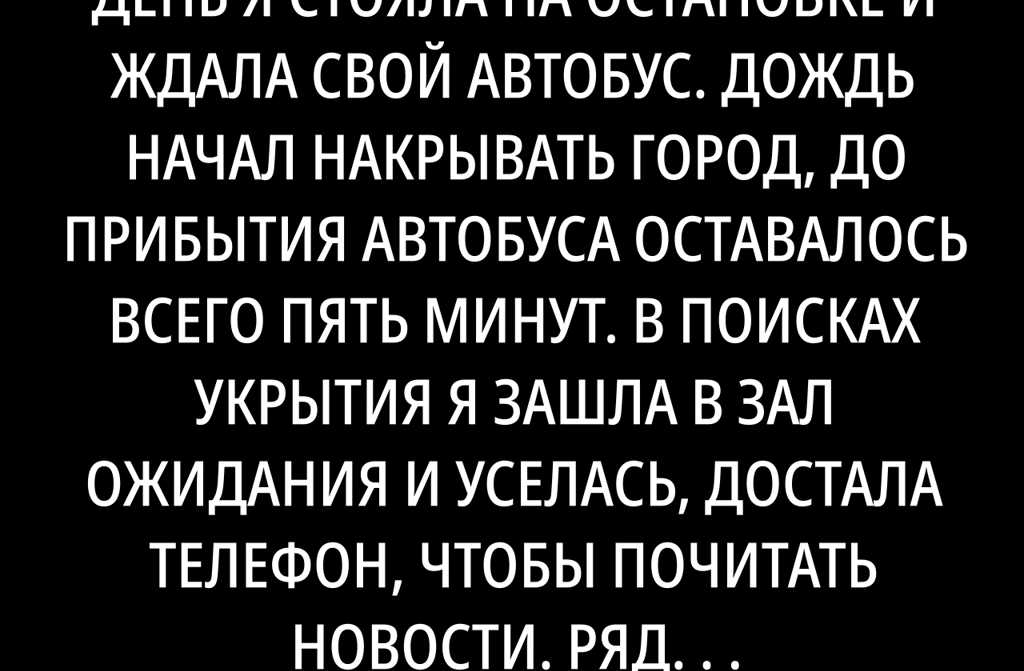 В один прохладный осенний день я стояла на остановке и ждала свой автобус. Дождь начал накрывать город, до прибытия автобуса оставалось всего пять минут. В поисках укрытия я зашла в зал ожидания и уселась, достала телефон, чтобы почитать новости. Рядом со мной на свободное место села пожилая женщина живая, с искоркой в глазах. Мы разговорились, и сразу было видно, как ей не хватает общения. Начали с простых вещей, обсуждая ненастную погоду, а затем она перешла на свою судьбу.