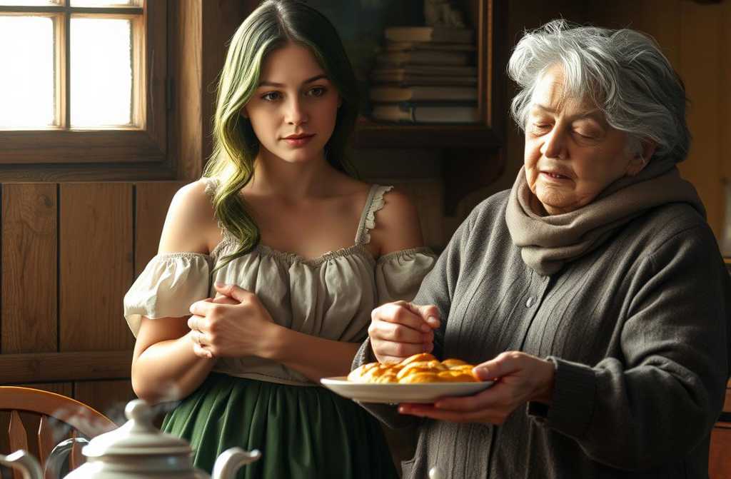 И вот однажды, спустя два года, решил он навестить родителей. Не один, а с Алёной — своей невестой. Говорит: «Мама, папа, это Алёна, моя любовь, моё будущее». Дверь открывается, а там девушка — высокая, стройная, волосы ярко-зелёные, как молодая трава, татуировки на руках и шее, макияж броский, будто с другой планеты. Косуха кожаная, джинсы рваные, ботинки тяжёлые — ну совсем не такая, как в деревне привыкли.