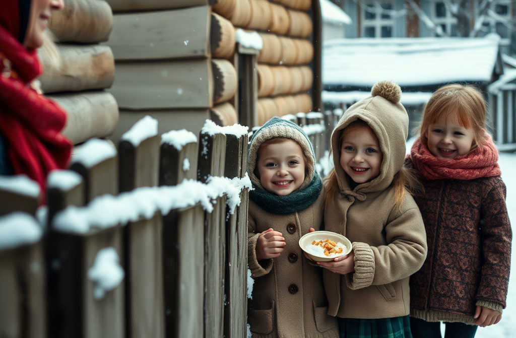А снежинки за окном кружились всё гуще будто сами несли тёплую весть дальше, по деревне, чтобы добро не закончится на пороге одной избушки.