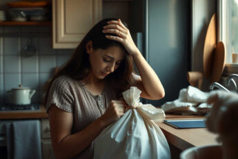 «Прошу прощения… Я сейчас всё уберу», пролепетала она, хватая салфетки со стола.