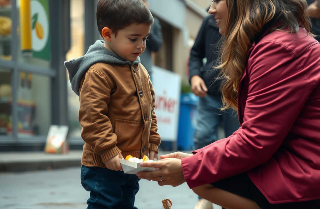 Мимо проходили родители с детьми, все несли полные пакеты продуктов. По одежде мальчика было видно ему действительно не хватает еды. Мама, кажется, потеряла самообладание и резко оттолкнула сына. Потом закричала, что из-за него вся её жизнь испорчена. После этих слов женщина вдруг побежала в неизвестном направлении, просто бросив сына одного. Я была в шоке от её поступка.