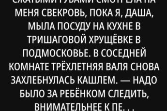 Это всё твоя вина! сжатыми губами смотрела на меня свекровь, пока я, Даша, мыла посуду на кухне в тришаговой