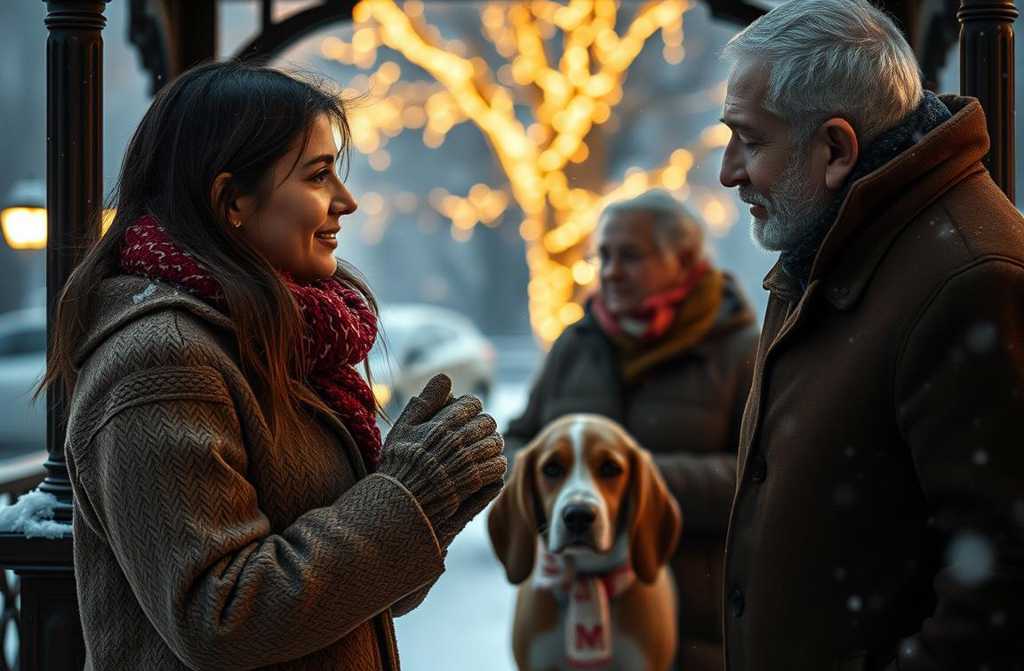Время шло, снег не утихал. В домах зажигались ёлки. Многие уже сидели за столом, провожая старый год. Вдруг у ног Татьяны и Геннадия появилась собака.