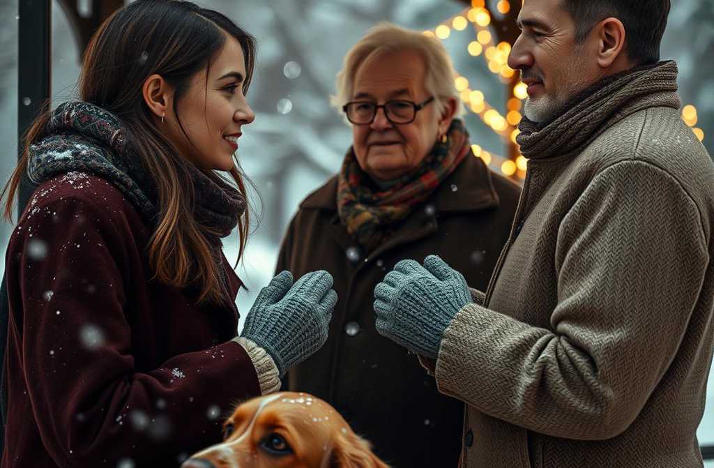 Время шло, снег не утихал. В окнах мелькали ёлки. Многие уже сидели за столом, провожая старый год. Вдруг у ног Татьяны и Виктора появился пёс.