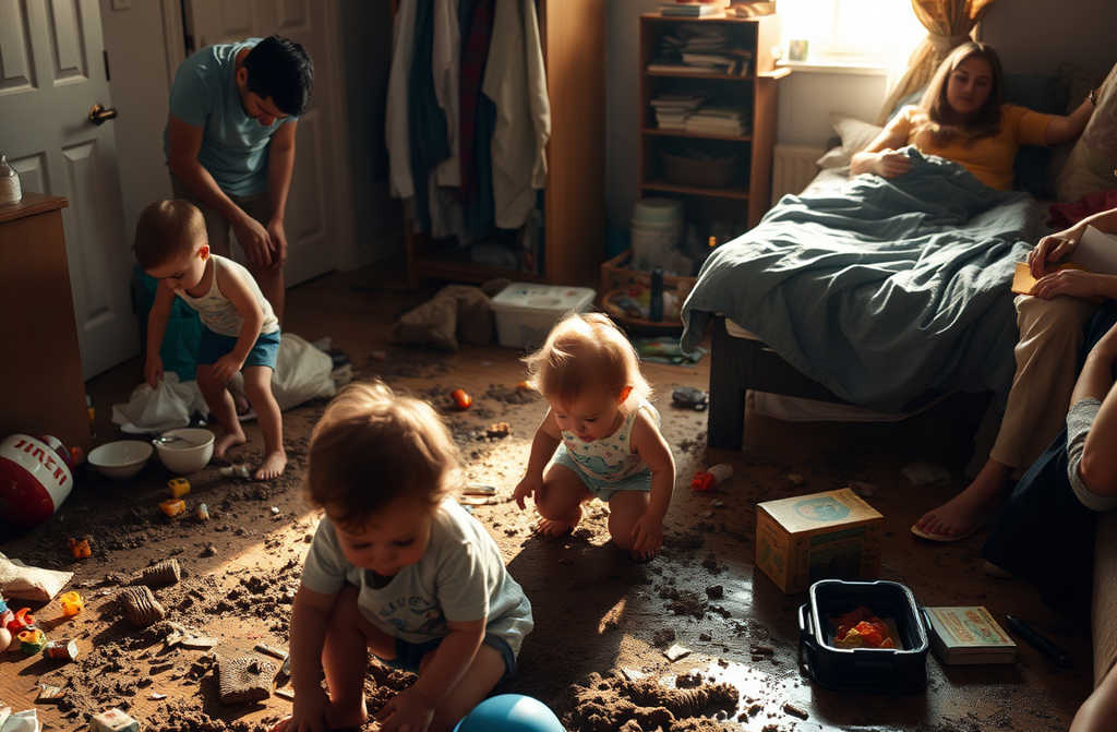 На мгновение в комнате воцарилась тишина. Артём стоял в дверях, не зная, смеяться ему, кричать или просто сесть на пол, как его дети. Он смотрел на Алину, всё так же спокойную, и мысленно прокручивал всё, что увидел: хаос, грязь, полный беспорядок. Впервые за долгое время он не знал, что сказать.