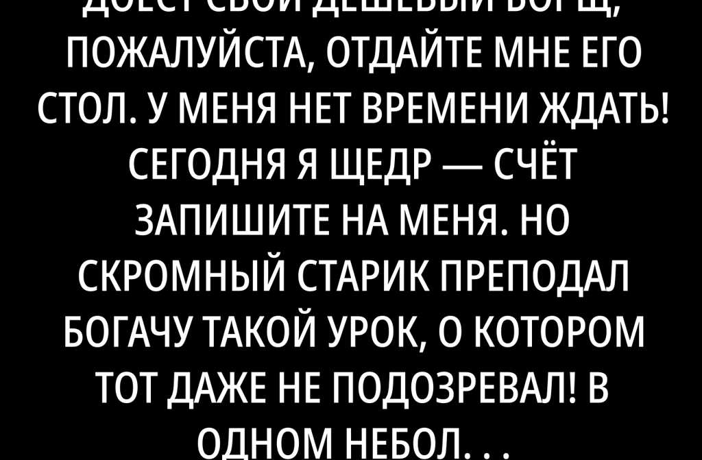 Но скромный старик преподал богачу такой урок, о котором тот даже не подозревал!