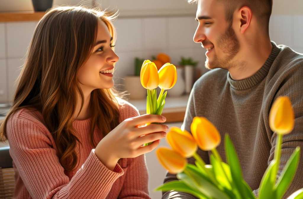 Да, в машине. А вот вам, достал Алексей маленький букет тюльпанов.
