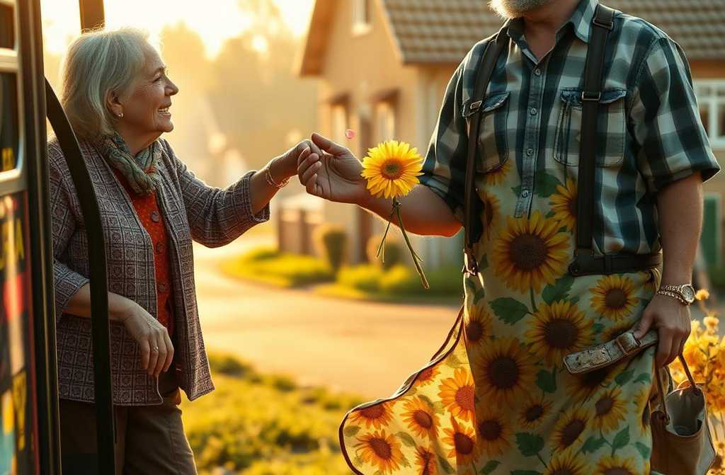 Ехала в автобусе волнуясь. Но когда вышла на остановке, увидела высокого мужчину с цветами.