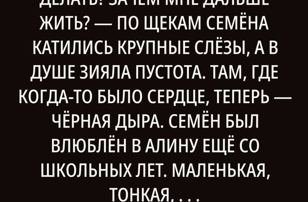 Как я теперь без тебя? Что мне делать? Зачем мне дальше жить? по щекам Семёна катились крупные слёзы, а в душе зияла пустота. Там, где когда-то было сердце, теперь чёрная дыра.