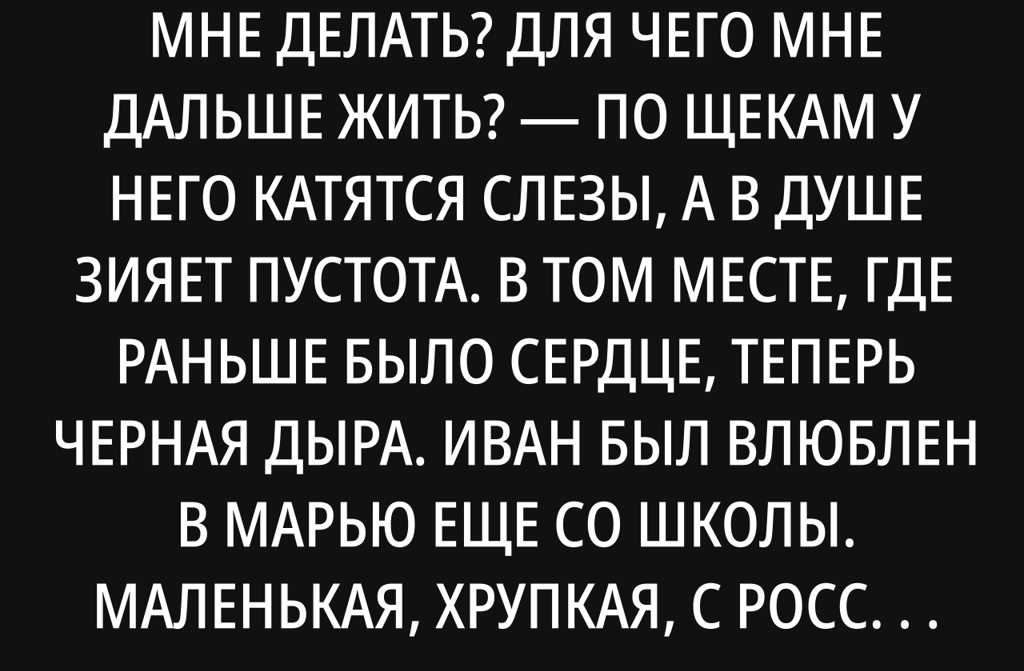 Перед глазами проносилась вся жизнь с Марьей, счастливые дни, ее улыбка. А в ушах звенел её звонкий смех. Иван опустился на колени и громко зарыдал жалобно, по-звериному.
