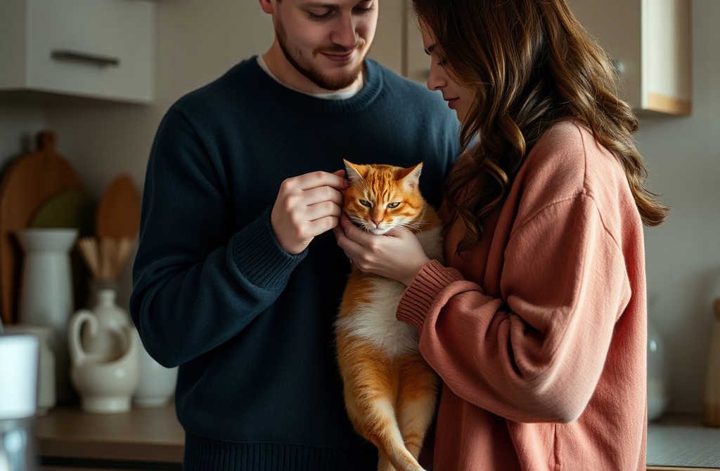 Барсик осторожно выходит, трётся о ноги. Анна насыпает ему корм кот набрасывается, будто не ел неделю.