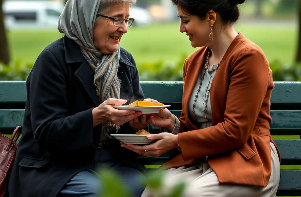 В тот вторничный вечер небо затянуло грозовыми тучами. Маргарите, уже семьдесят три года, пришлось крепче застрять воротником, когда она шла по парку. Колени болели, дыхание прерывалось, но руки оставались крепки, удерживая всё ещё тёплую тарелку.