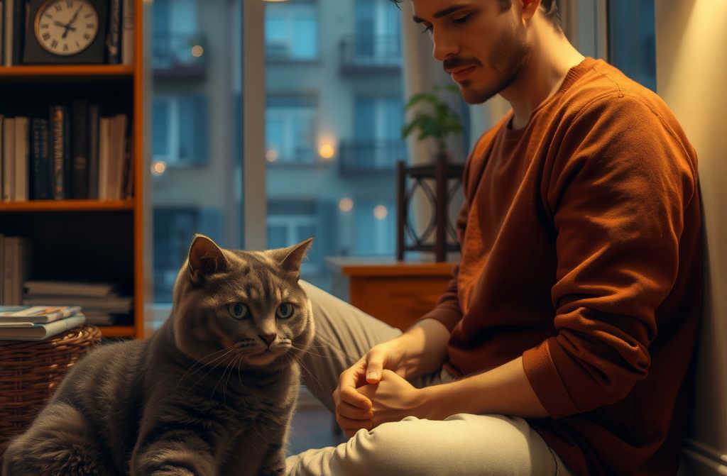 Так мы просидели почти час: человек и кот, разделённые метром пола, но соединённые уговором. Это была самая близкая тишина за долгие годы.