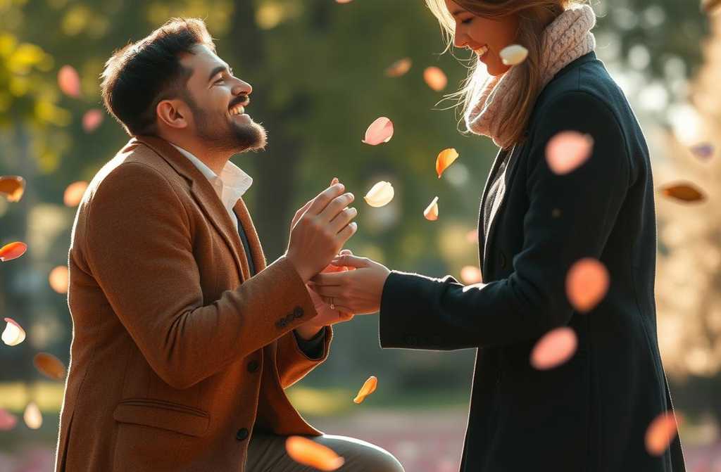 — Алиса, будь моей женой, — твёрдо и вдохновенно произнёс он, опустившись на одно колено с открытой бархатной коробочкой, в которой сверкало кольцо, и с огромным букетом в другой руке.