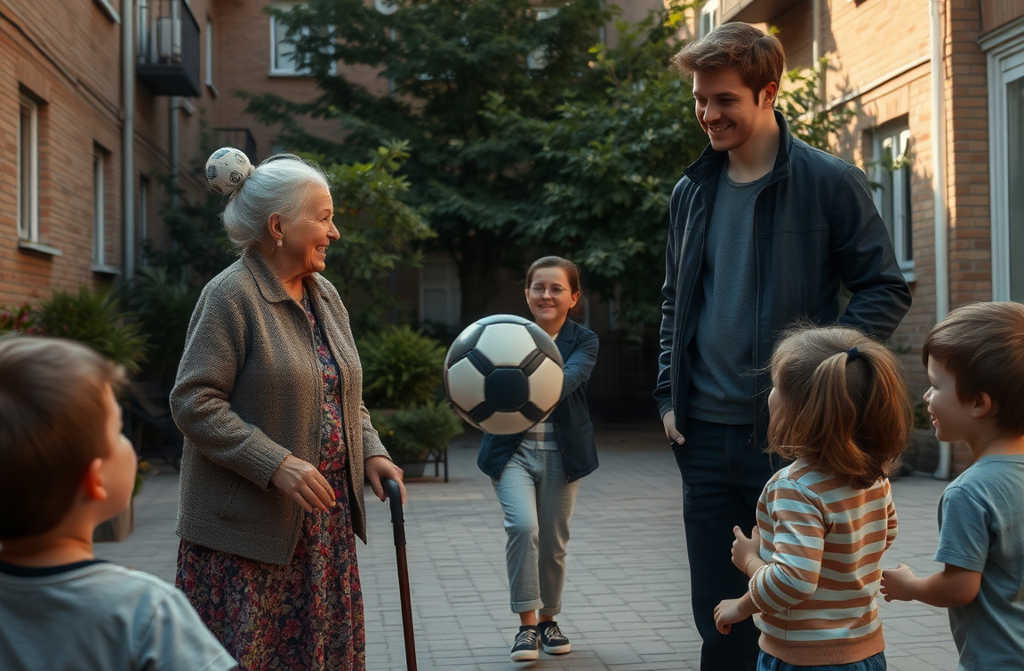 С неохотой Пётр взял мяч из дома. Через полчаса двор наполнился смехом: он учил малышей бить пенальти.