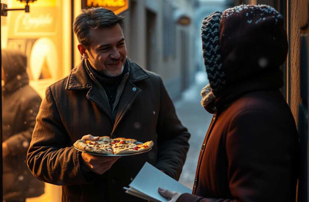 Возвращался домой после тяжёлой смены. Мороз пробирал до дрожи, снег лип к подошвам, а мысли были лишь о тёплом одеяле и чашке чая. У «Берёзки», маленького кафе у дороги, увидел его — бездомного. Сидел на картоне, съёжившись от холода, закутанный в поношенную куртку. Перед ним лежала потрёпанная шапка с парой монет. Люди проходили мимо, делая вид, что не замечают. Я уже прошёл мимо, но вдруг остановился. Может, из-за его взгляда — усталого, но с какой-то тихой покорностью.