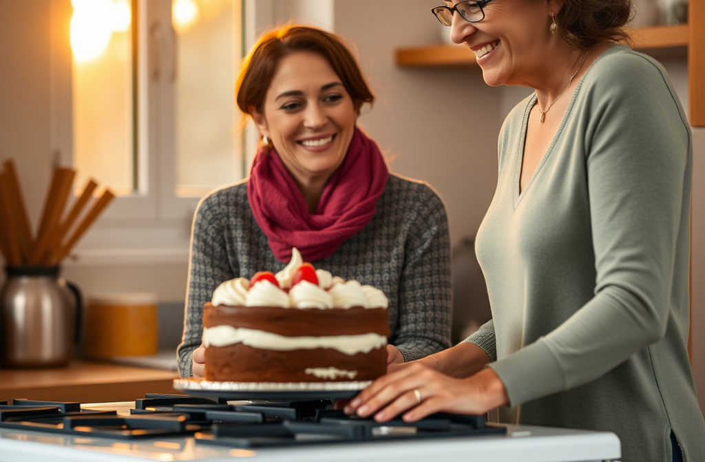 …Прошёл месяц. Екатерина сидела на кухне Ларисы Васильевны. Белая плита блестела в углу, духовка работала, наполняя дом ароматом ванильного бисквита.