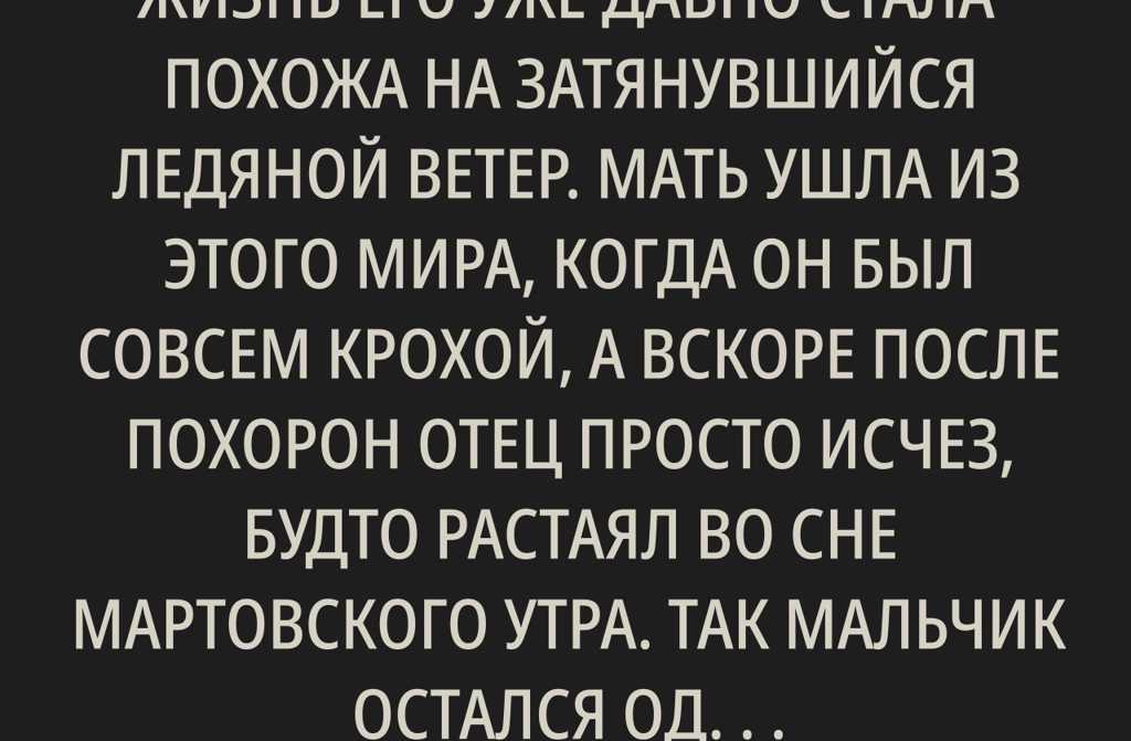 Лёша был всего двенадцать, но жизнь его уже давно стала похожа на затянувшийся ледяной ветер. Мать ушла из этого мира, когда он был совсем крохой, а вскоре после похорон отец просто исчез, будто растаял во сне мартовского утра. Так мальчик остался один как застывшая снежинка на московской мостовой.