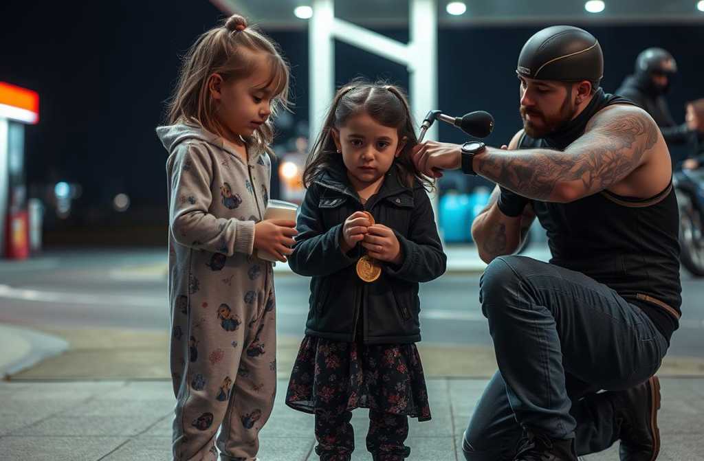 Ей не могло быть больше шести. Она стояла в грязной пижаме с мультяшными героями, дрожа на холодном асфальте заправки, сжимая в руках то, что, видимо, копилось годами. Слёзы оставляли чистые дорожки на её запылённых щеках.