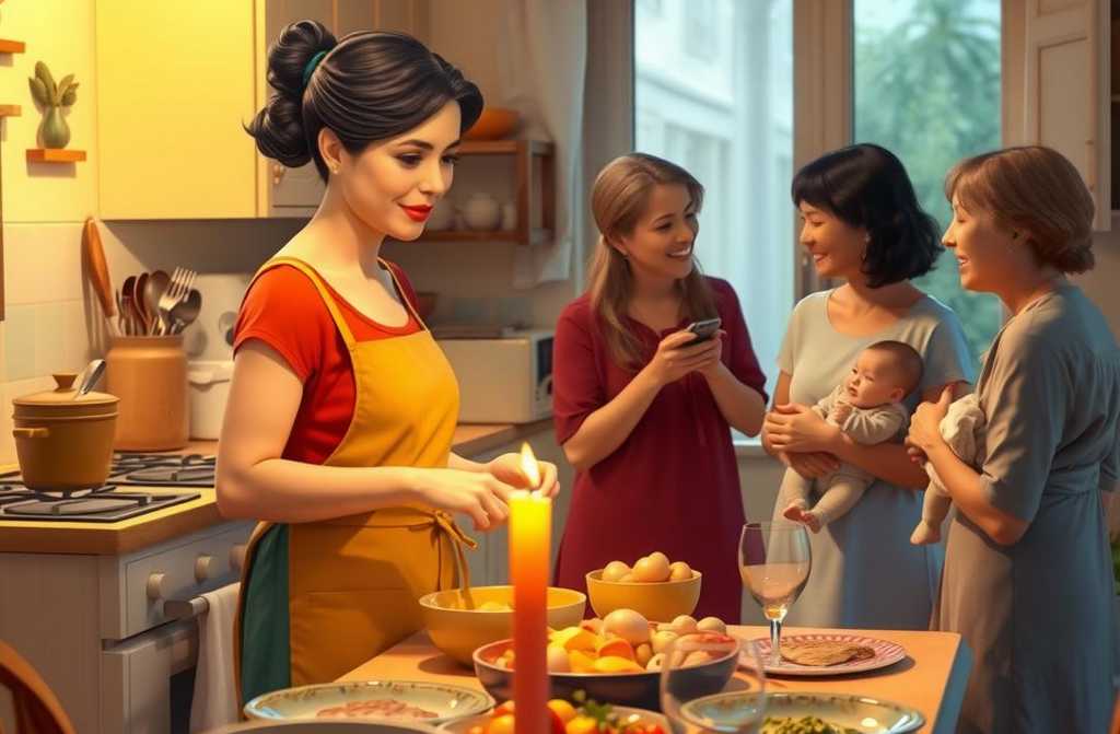 Окинула взглядом стол, поправила причёску в зеркале, скинула фартук — и открыла.