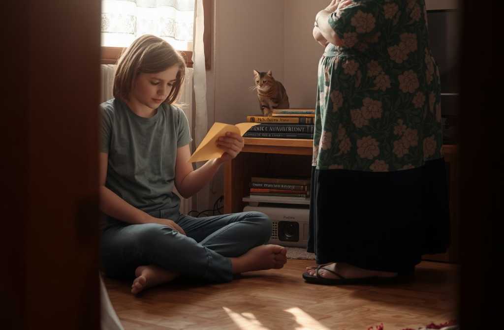 Варя садится на пол, берёт пухлый конверт с тетрадными листками, любимый кот рядом, и читает.