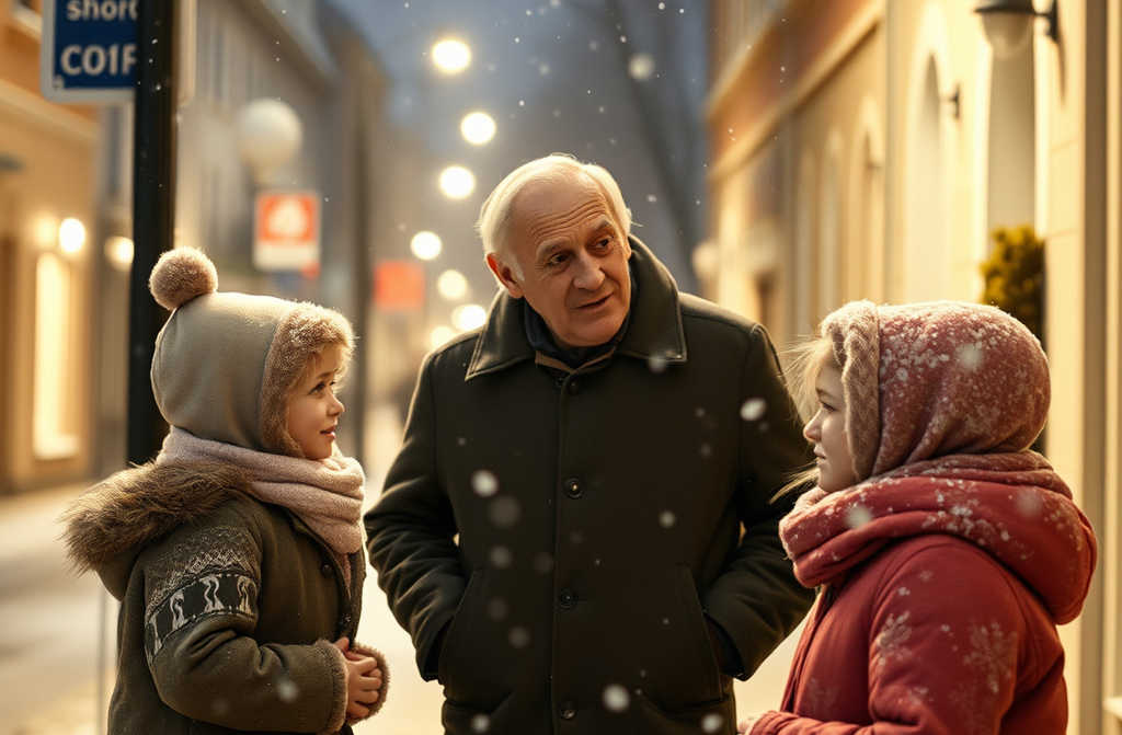 Посреди улицы, словно крошечные свечки на ветру, стояли две одинаковые девочки, года по четыре, держались за руки. Не плакали, не убегали, не просили помочь. Просто сидели, прижавшись друг к другу, будто холод научил их, что движение это праздник, а не данность.
