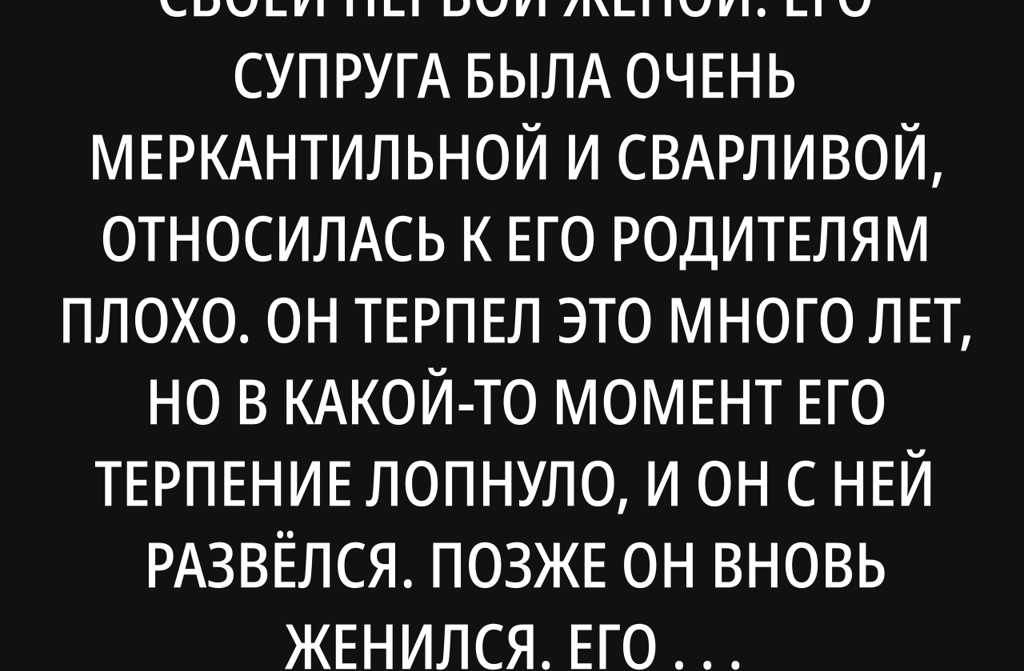 Мой брат долгое время жил со своей первой женой. Его супруга была очень меркантильной и сварливой, относилась к его родителям плохо. Он терпел это много лет, но в какой-то момент его терпение лопнуло, и он с ней развёлся. Позже он вновь женился. Его новая жена воспитывала дочку. У моего брата так и не появилось детей ни от первого, ни от второго брака. Спустя некоторое время жена умерла. Приёмная дочь выросла, вышла замуж и уехала.