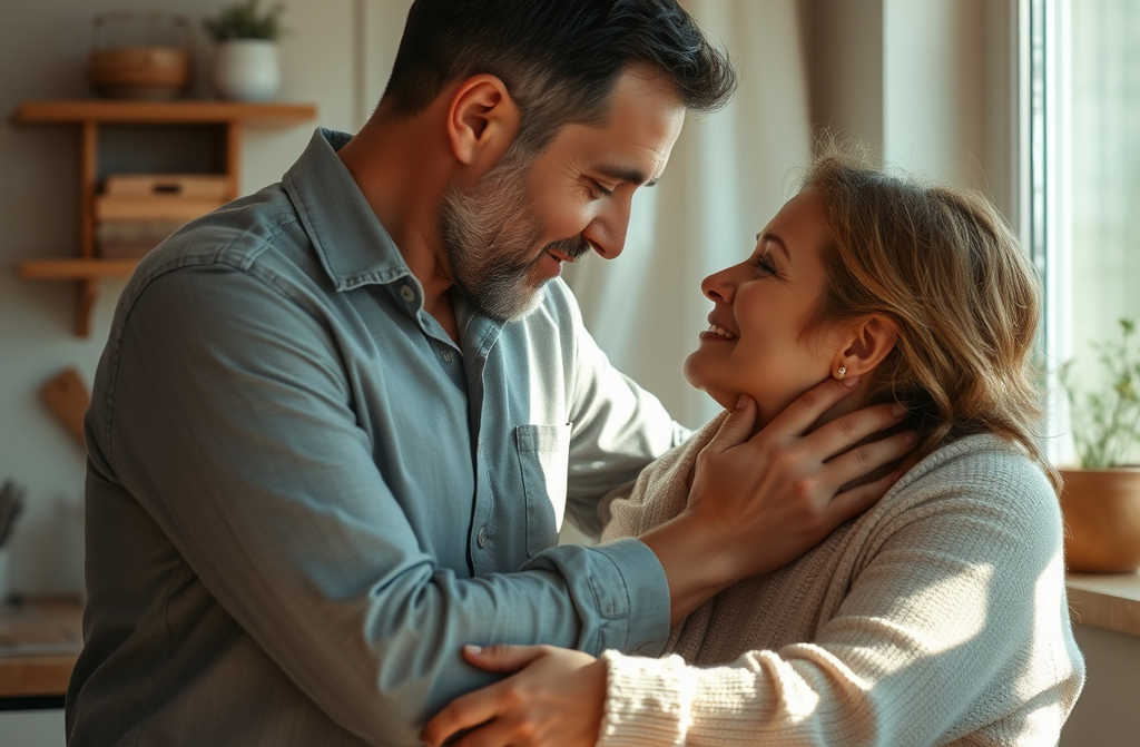 Антон подходит к жене, обнимает Вера прячет лицо на его груди, плечи дрожат.