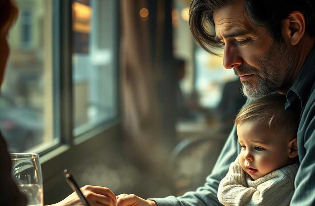 Наталья замерла, вилка застыла в воздухе, и она повернулась к мужчине, стоявшему на коленях рядом с её столом. Ему не было и сорока, но жизнь состарила его раньше времени. К груди у него были привязаны тряпицей два крошечных ребёнка их личики бледные, исхудалые. На нём были рваные джинсы и застиранная майка, испачканная пылью и потом. Он дрожал не от страха, а от измождения. Но в глазах его не было стыда, только отчаянная любовь отца.