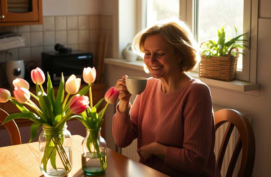 Села за кухонный стол с чашкой чая и подумала: может, это и есть начало. Не грандиозный, не киношный. Просто в простых жестах: в свежих тюльпанах, купленных себе, в полуденном прогуле без причины, в смелости сказать: «Не знаю, что дальше, но я решу сама».