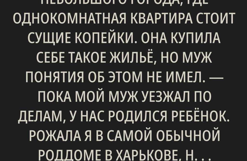 Пока мой муж уезжал по делам, у нас родился ребёнок. Рожала я в самой обычной роддоме в Харькове, но ему сказала, будто лежала в элитном заведении А вообще: деньги, которые он присылал на продукты, я тратила крайне экономно. Когда муж был дома, в холодильнике всегда лежали мясо, рыба и всякие деликатесы. Но стоило ему отъехать, всё снова превращалось в режим строжайшей экономии.