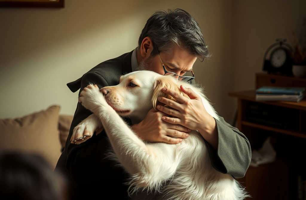 Мужчина не сдерживает слёз, прощаясь со своим верным псом, с которым прожил 14 лет