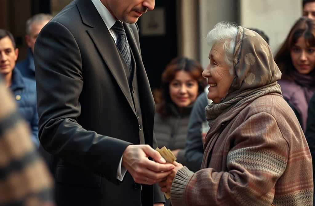 Старушка пошла домой мелкими шажками, но на душе у неё стало легче. Под мышкой она несла пакет с подарками от людей, а в сердце бесконечную благодарность. Дома её ждал больной муж, и теперь она могла принести ему не только хлеб и лекарства, но и весть о том, что в мире ещё есть доброта и справедливость.