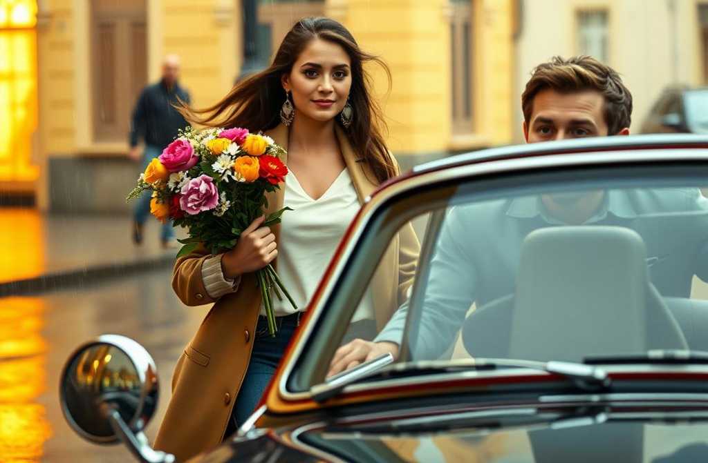 Когда Татьяна подошла к цветочному киоску, первые тяжёлые капли упали ей на плечо. Едва она успела встать под навес, как дождь усилился.
