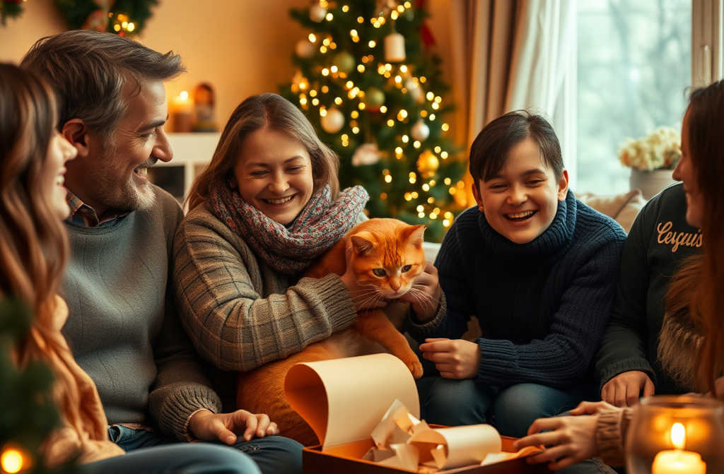 Часы показывают два мы все собрались в гостиной. Я торжественно держу коробку: