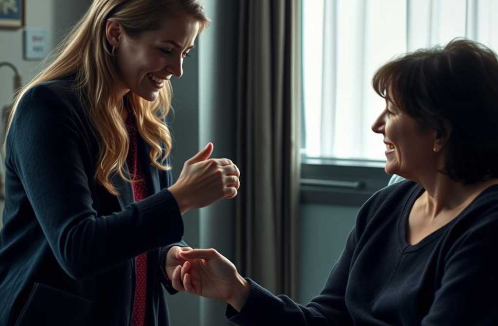 Аня рассказывает ей тревогу, показывая фотографию Веры.