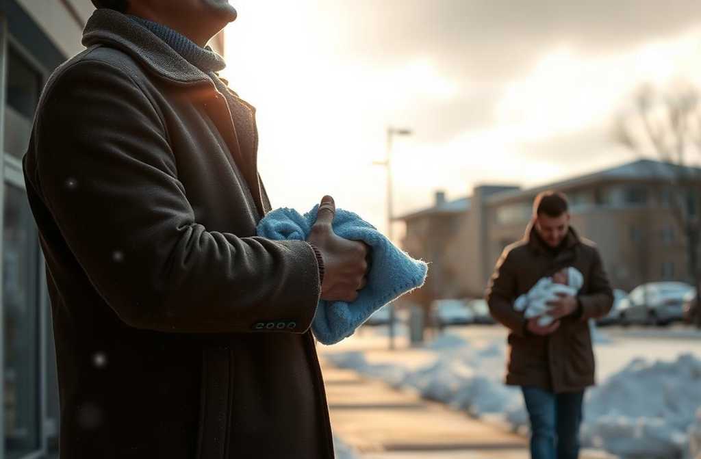 В машине он увидел, как из роддома вышла группа. Впереди — счастливый отец сОн улыбнулся, глядя на свёрток в руках незнакомца, и вдруг осознал, что самое страшное уже позади, а впереди — только свет.