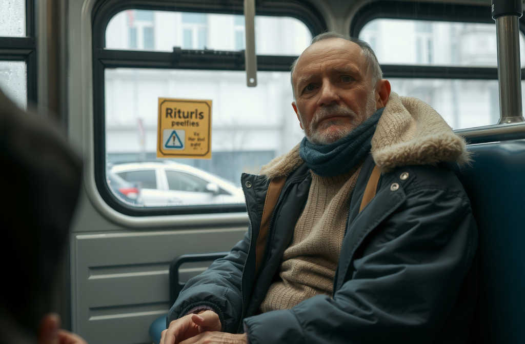 Почти все пассажиры отвернулись к окнам, поглощённые дождём. Несколько человек, не глядя, залезли в свои старые кожаные кошельки. И вдруг, словно выстрел в утренней тишине, раздался крик от мужчины в клетчатой рубашке: