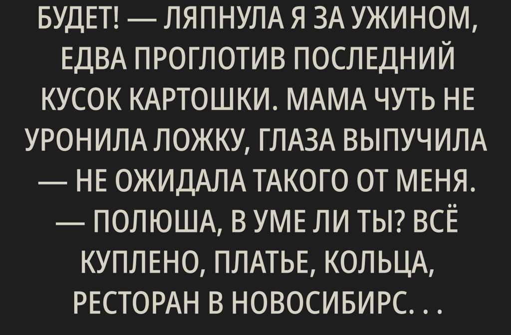 Полюша, в уме ли ты? Всё куплено, платье, кольца, ресторан в Новосибирске уже оплачен… Твой Артём свадьбу ждёт, как спасенья Поля, скажи, что это глупая шутка, забеспокоилась мама.