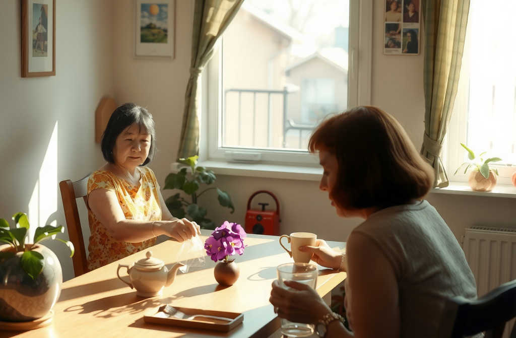 Пауза наполнила комнату густым молчанием. Катя тянулась к пакету, но бабушка торопливо упрятала его под стол. Варвара наблюдала: ложку дали маленькой внучке не спросив, не подумав, будто всё в чужом доме становится твоим на мгновение.
