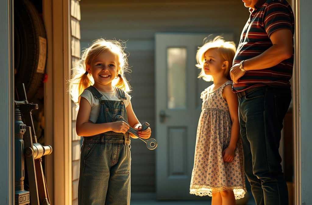 Девочки дружили, хоть и были разные. Алина — настоящий сорванец в юбке: лазила по деревьям, дралась с мальчишками, защищала брата, а ещё обожала возиться в гараже с отцом. Болтики, гаечные ключи — её страсть. Отец только посмеивался: «Дочка, не надо мне тут порядок наводить, лучше ключ на «десять» подавай!»