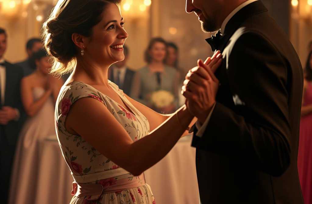 Музыка стихает, но зал остаётся в тишине. Все взгляды прикованы к загадочному мужчине и одинокой матери, выглядящей теперь как королева. Его рука лёгко скользит по её талии, а глаза сканируют комнату с резкой точностью.