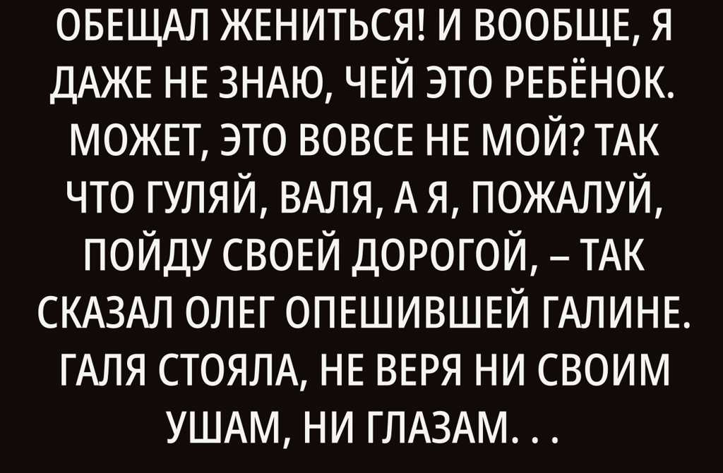 Может, это вовсе не мой? Так что гуляй, Валя, а я, пожалуй, пойду своей дорогой, так сказал Олег опешившей Галине.