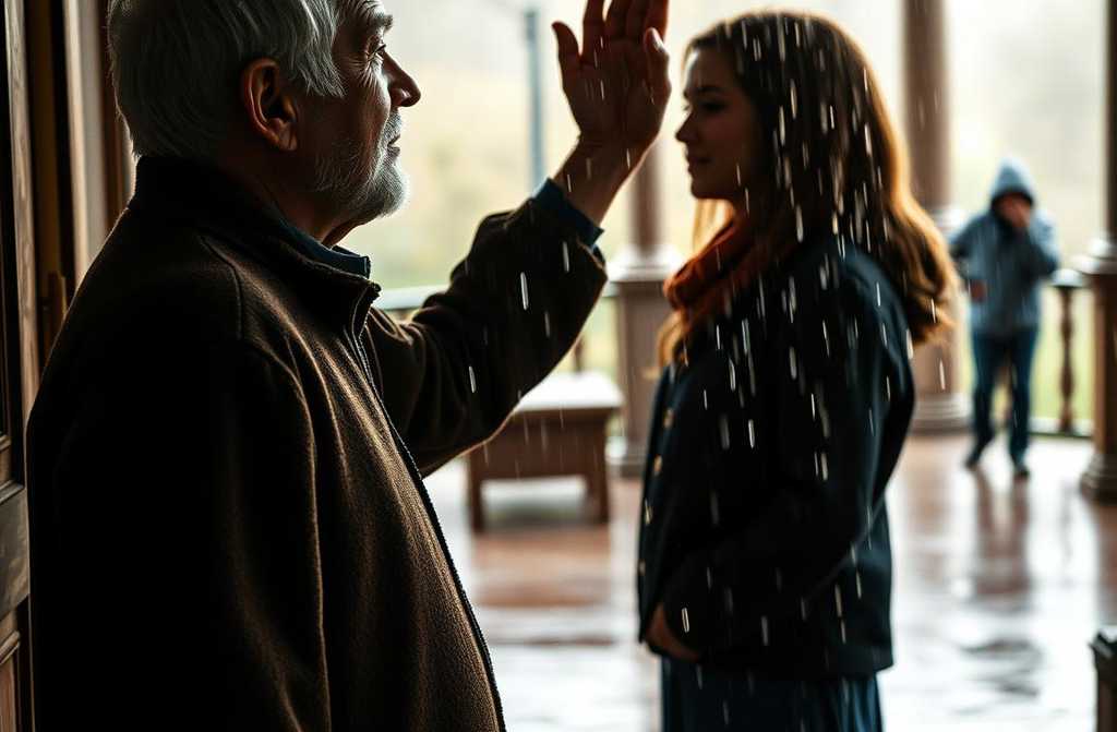Утро дождливое. Олег ждёт, пока все уйдут, и остаётся один с воспоминанием о Злате.
