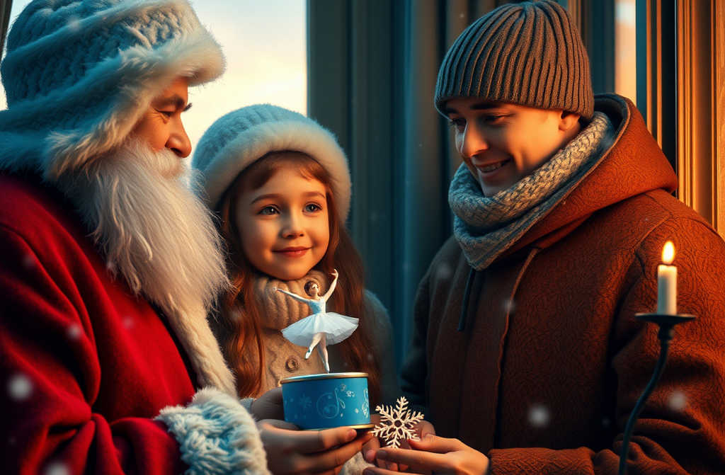 Катя целую неделю крутится у витрины балерину сторожит. Продавец уже узнаёт и, завидев, обязательно заводит шкатулку балерина танцует, Катя мечтает. За это время Катя с лупой изучила шкатулку: уголок чуть стёрт, на платье у балеринки крошечная точка, пуант потерялся где-то… Всё равно сердце радуется.